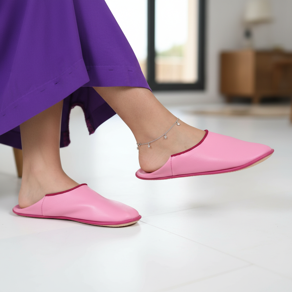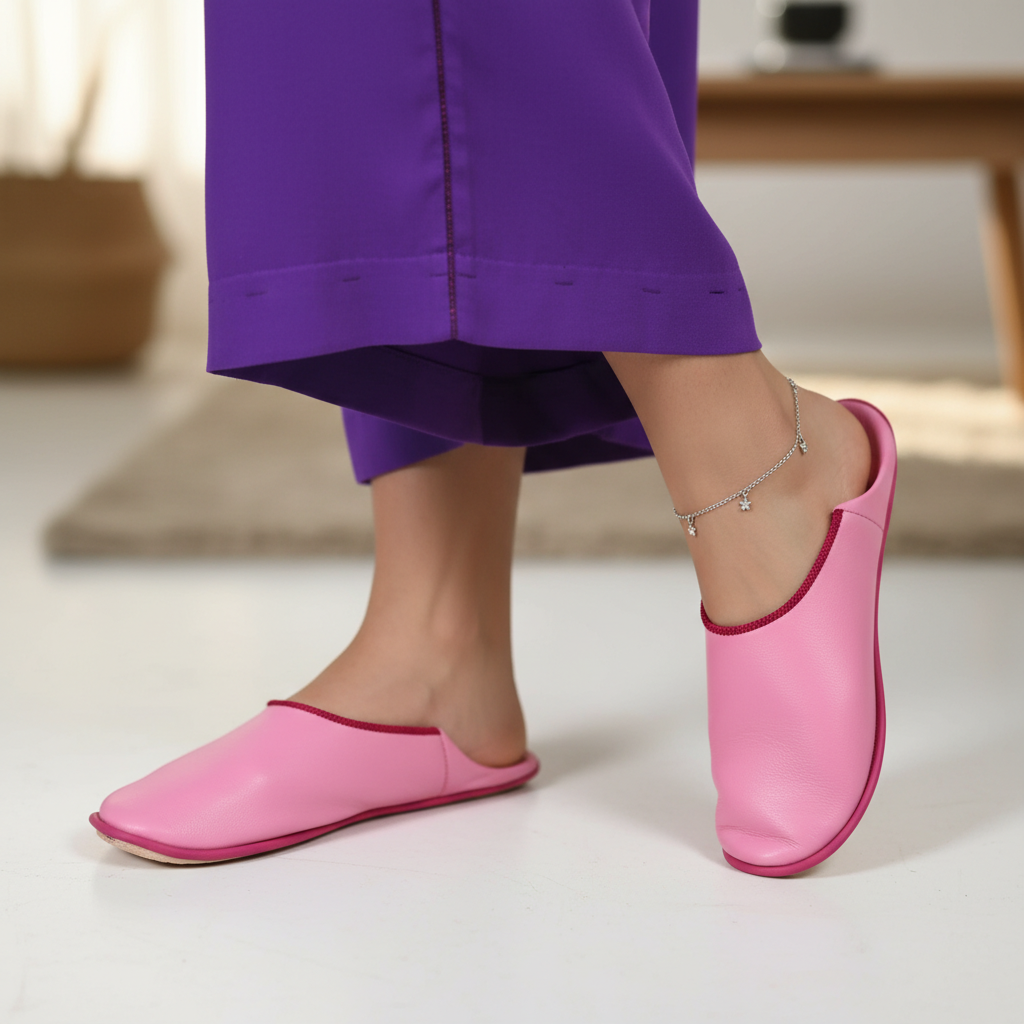 Zapatillas de piel marroquí hechas a mano en color rosa